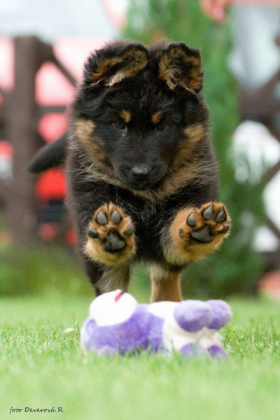 Daikiri je od malinka pěkné kvítko, mezi ostatními fenami z vrhu byla od začátku nejhlasitější :) Svou hlasitost postupně začala přesouvat na svou fyzickou akčnost. Takže se v šesti týdnech naučila utíkat z kotce, o pár dní později překonala venkovní výběh (asi 70cm), a s překonáním navýšení výběhu nečekala ani do druhého dne. Jasně tedy dala najevo, že už hodlá být mezi svými, a trochu mi připomněla, proč jsem se štěňátkem ze začátku úplně nesouhlasila :-D