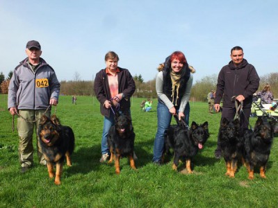 Na začátku dubna jme se byli podívat na naše "béčka" na svodu dorostu v Újezdě nad Lesy. Byl tam Barney s Bartem. Kluci pěkně vyrostli. Dnešním dnem jim je necelých 8 měsíců. Potkali jsme se tam i s Duškovými, majiteli Edena Bryvilsára, a tak jsme neodolali rodinnému fotu :-) Kluci samostatně vyfoceni na svodu ve složce Vrh B.